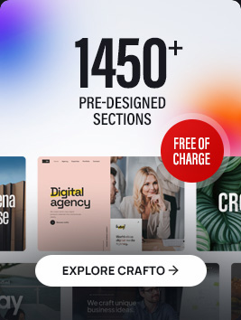 A unique collection of over 1450+ pre-made section that make building a beautiful site easy. Crafto elements brings the latest web trends to your fingertips.